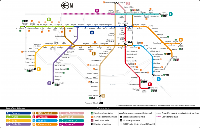 Other lines were added gradually over the next several years, and as of 2019, 8 lines totaling 114.4 km (71 mi) 1 run throughout the city. Actualmente el sistema transmilenio cuenta con 138 estaciones y 9 portales. Transmilenio is a bus rapid transit (brt) system that serves bogotá, the capital of colombia, and soacha. Sep 16, 2020 · a continuación podrá consultar el mapa de los servicios troncales de transmilenio, esto le ayudará a planear los viajes de forma fácil y rápida. Transmilenio hoy, 21 de junio: